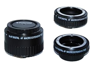Polaroid Auto Focus DG Macro Extension Tubes are designed to enable your lens to focus closer than its normal set minimum focusing distance, this way you can magnify your subject. The tubes are very useful for macro photography. The extension tubes have no glass. The Extension tubes are attached between the camera body and the lens. This set consists of three tubes, the tubes may be used singly or in combination with one another for a total of seven different lengths. Each tube is provided with a mounting bayonet and electrical contacts which match those of your particular camera choice. The contacts allow the camera's lens to respond to its automatic exposure system giving you a perfect exposure each time.